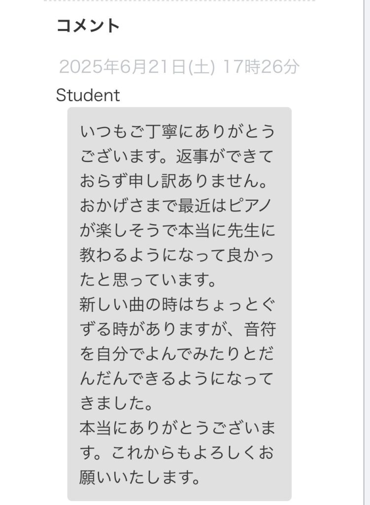 他教室の対面レッスンが辛くなり、一度はピアノを諦めそうになったお子様が、